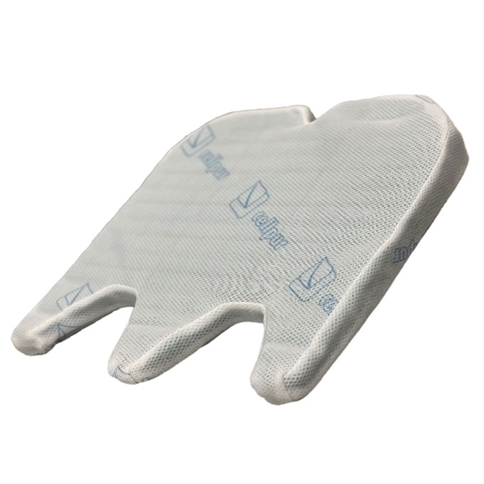 ウレタンフォームだけでなくシェル(側地)の表側部分にはテンセルを100%使用している。これによりしっとりとした肌触りを実現。テンセルは素材特性上優れた吸水性と吸放湿性がある。また、ウレタンフォームにも吸放湿性があるため座った時にムレにくい状態にし、快適な着座時間へ導く。シートクッションを「お尻のまくら」と考え選定したこだわりの生地である。そして肌あたりは驚くほど柔らかで滑らか。テンセルは公定水分率が11.0%もあり、ポリエステル系合成繊維(0.4%)と比較して約27.5倍と非常に高い数値。非常にしっとりとした素材で肌にまとわりつきにくいことから、寝具製品以外には高級な下着などにも使用されている。フォーユアネックピローやネムレルトッパーと同じ500gsmもある極厚のジャガード3層ニットで「cellpur」のロゴを表現することでクラス感のある仕上げとなっており、セルプールのシートの中では今までにない最高傑作であると言える。